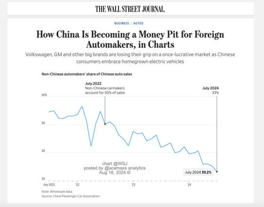 #China was a gold mine for global #automakers a decade ago. Not anymore -- “very few people are making money” in #China, #GeneralMotors CEO Mary Barra told investors in July, chart @WSJecon https://www.wsj.com/business/autos/how-china-is-becoming-a-money-pit-for-foreign-automakers-in-charts-4ae2e119?mod=hp_lead_pos9