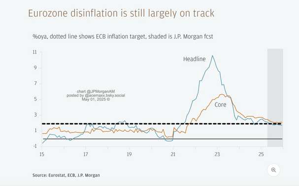 #disinflation#headline and core #inflation in the #eurozone is expected to fall in the coming months, chart @JPMorganAM